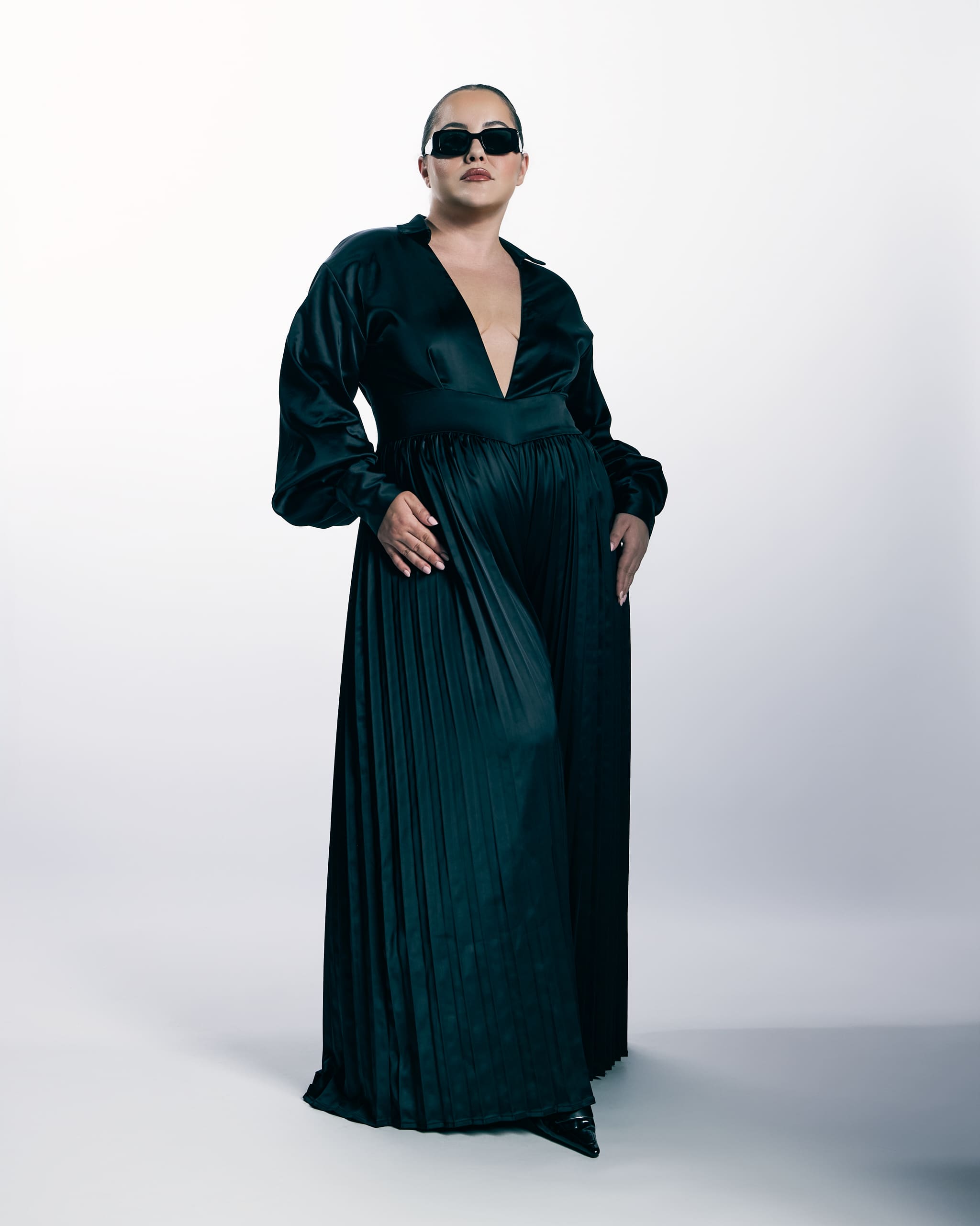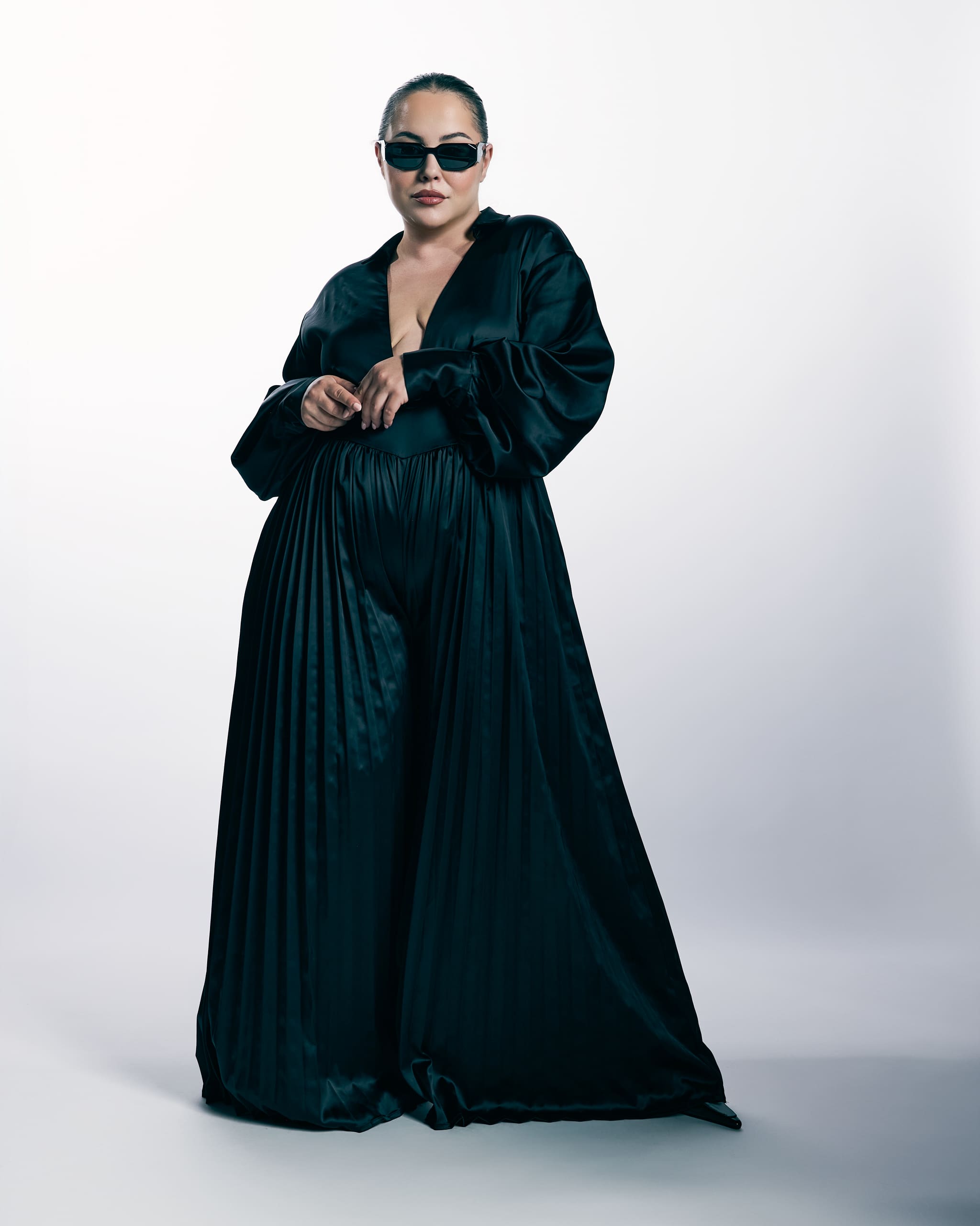 • Sculpted to seduce, pleated to move
