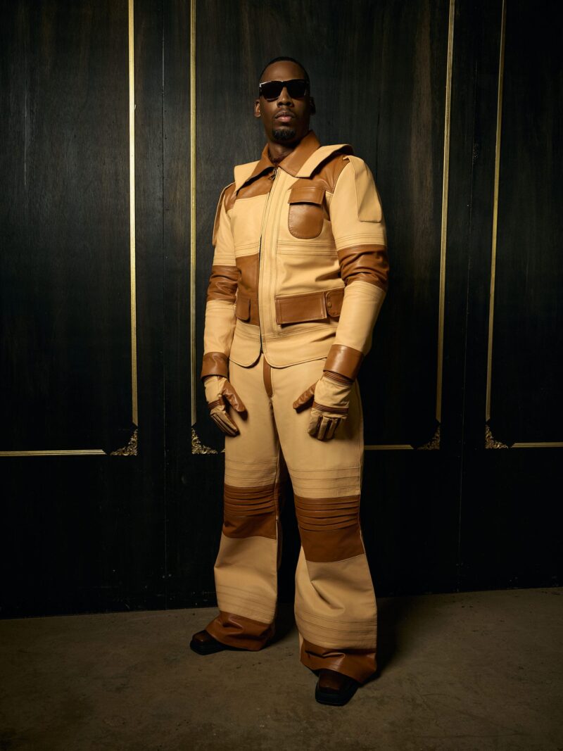 • Sculptural two-piece leather ensemble